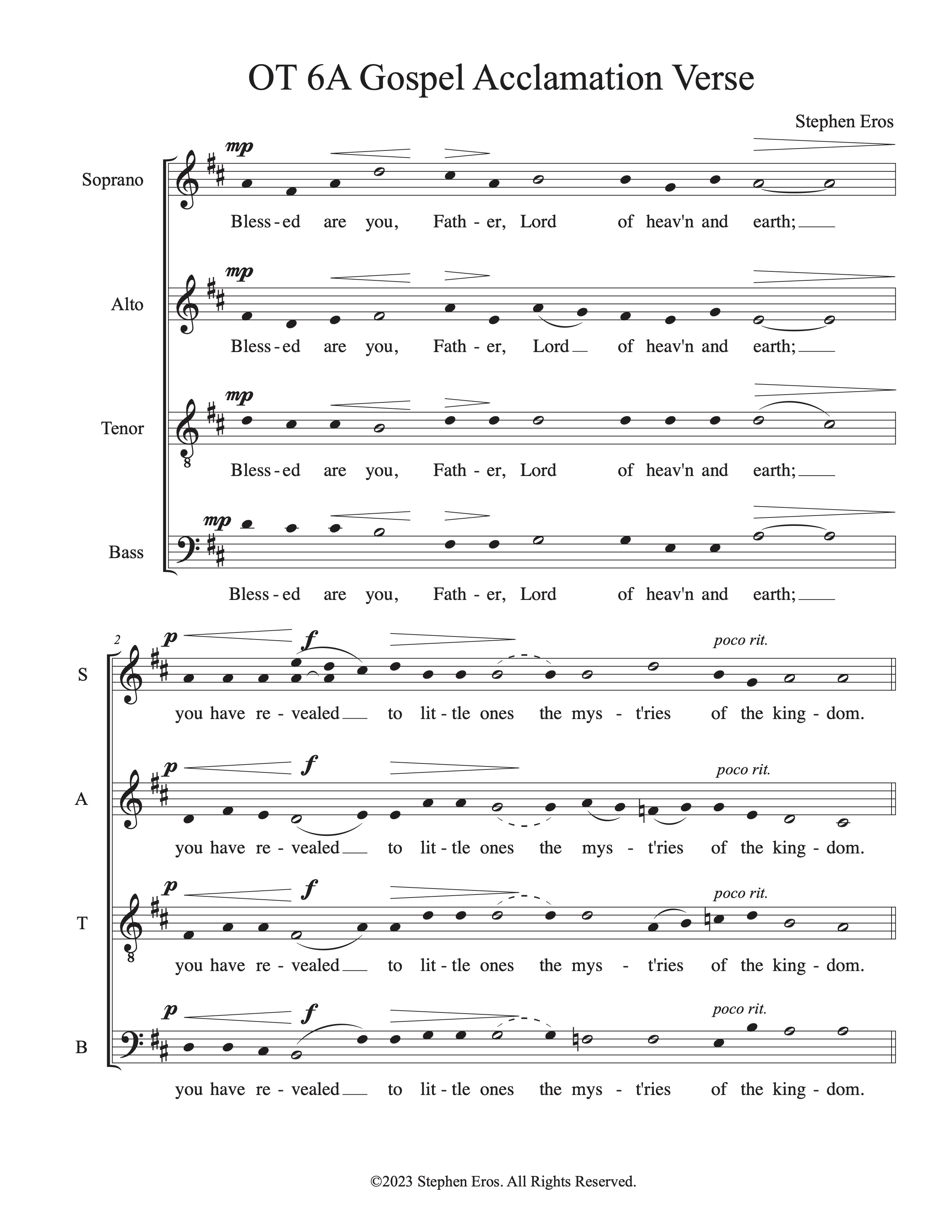 Since writing the Lenten Gospel Acclamation set, I have composed simple choral verses for nearly every liturgy for which the St. Clare of Assisi Choir sings, and for all three lectionary cycles. They are paired with pre-existing refrains, mainly from the GIA catalogue. I have included a few samples below. Please reach out if you are interested in obtaining copies of these for use in your parish.